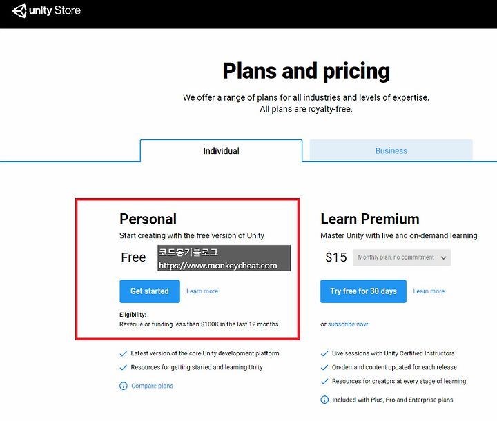 Persnal(개인) 버전으로 충분히 게임을 만들 수 있으니 Persnal 버전을 선택 해 설치해줍니다